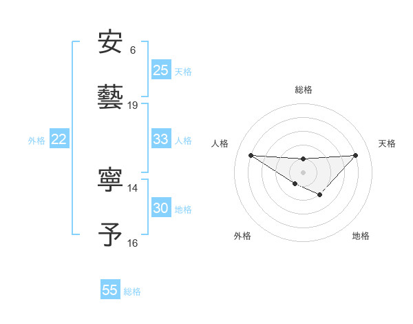 安藝 寧予さんを姓名の画数から五運を鑑定