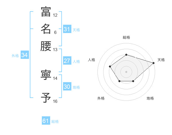 富名腰 寧予さんを姓名の画数から五運を鑑定