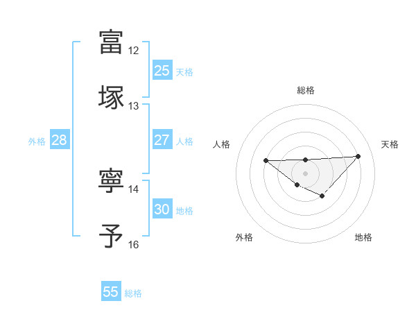 富塚 寧予さんを姓名の画数から五運を鑑定