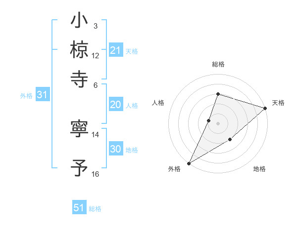 小椋寺 寧予さんの総格は51画の3点!