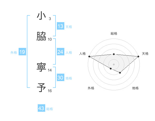小脇 寧予さんを姓名の画数から五運を鑑定