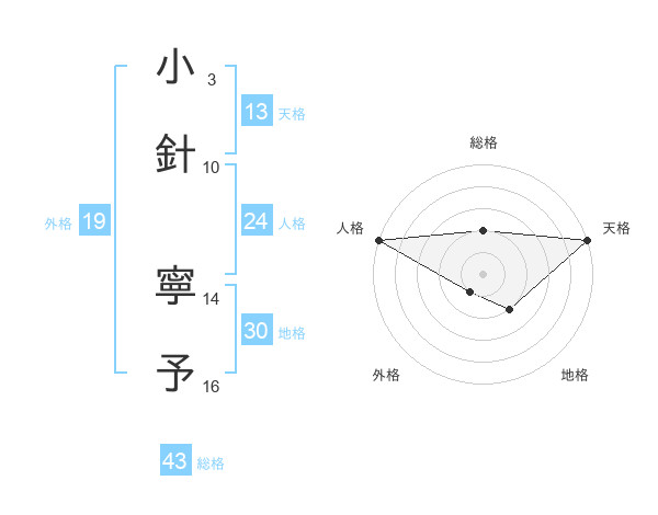 小針 寧予さんの総格は43画の2点!