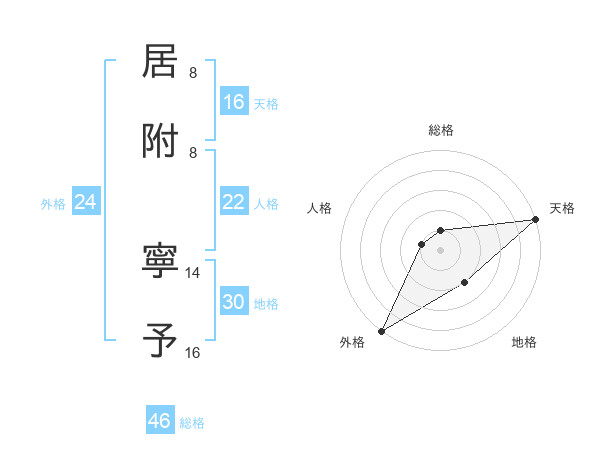 居附 寧予さんの天格は16画の5点!