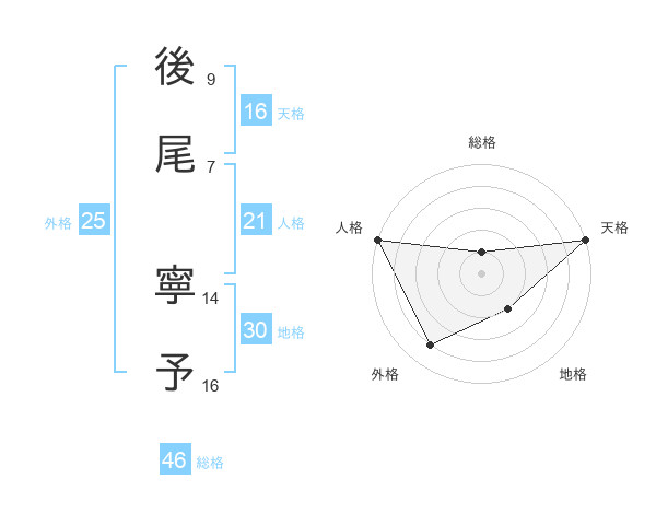 後尾 寧予さんの天格は16画の5点!