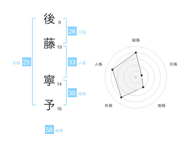 後藤 寧予さんを姓名の画数から五運を鑑定