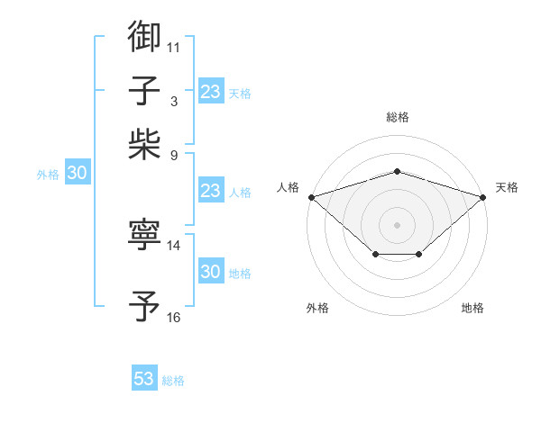 御子柴 寧予さんの天格は23画の5点!