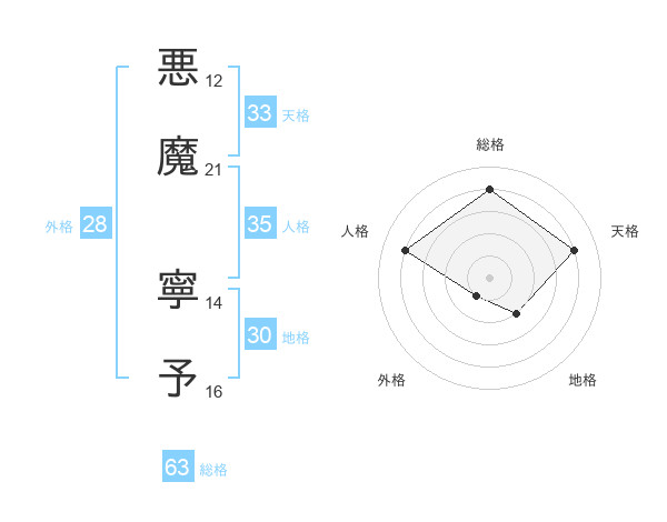悪魔 寧予さんの天格は33画の4点!