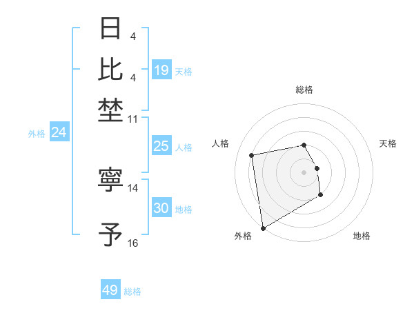 日比埜 寧予さんを姓名の画数から五運を鑑定