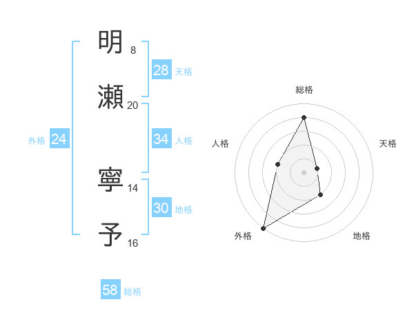 明瀬 寧予さんの総格は58画の4点!