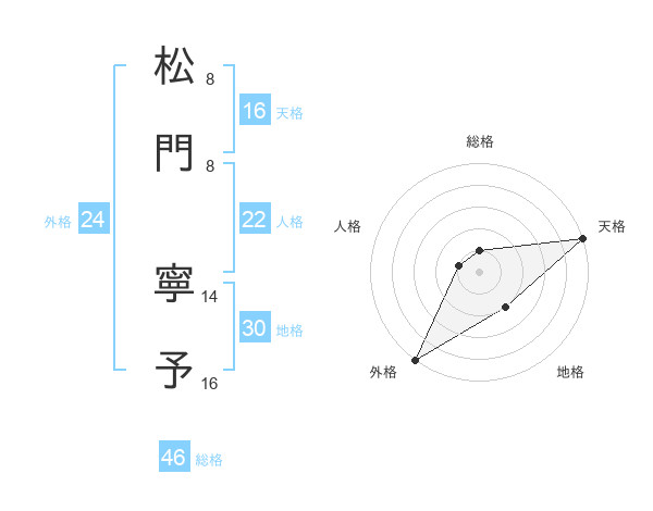 松門 寧予さんの総格は46画の1点!