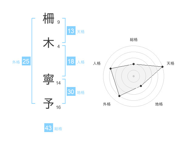 柵木 寧予さんを姓名の画数から五運を鑑定