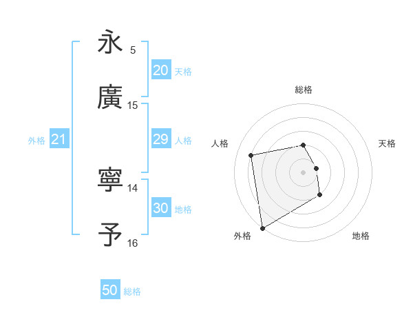 永廣 寧予さんの総格は50画の2点!