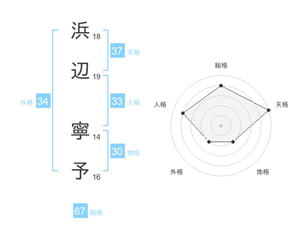 浜辺 寧予さんの天格は37画の5点!