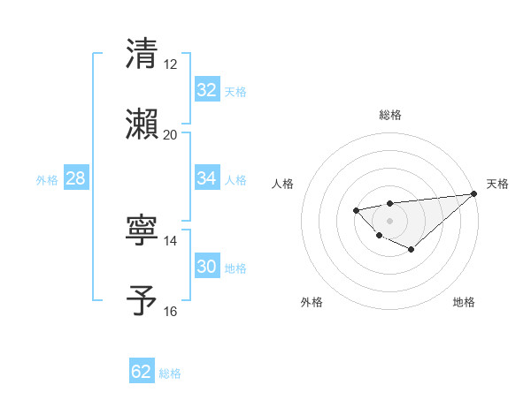 清瀨 寧予さんの天格は32画の5点!
