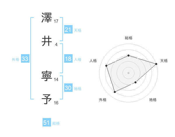 澤井 寧予さんの総格は51画の3点!