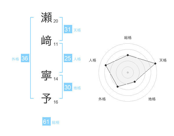 瀬﨑 寧予さんを姓名の画数から五運を鑑定