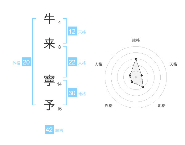 牛来 寧予さんの総格は42画の3点!