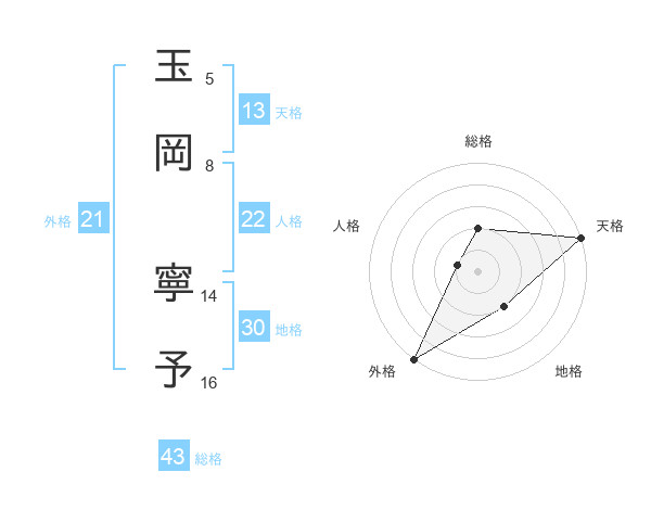 玉岡 寧予さんを姓名の画数から五運を鑑定
