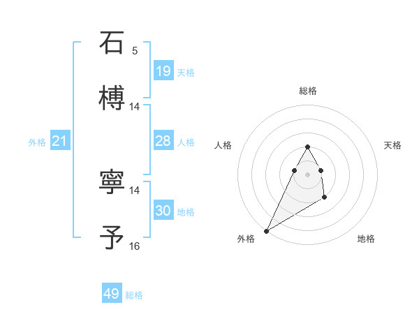 石榑 寧予さんの総格は49画の2点!