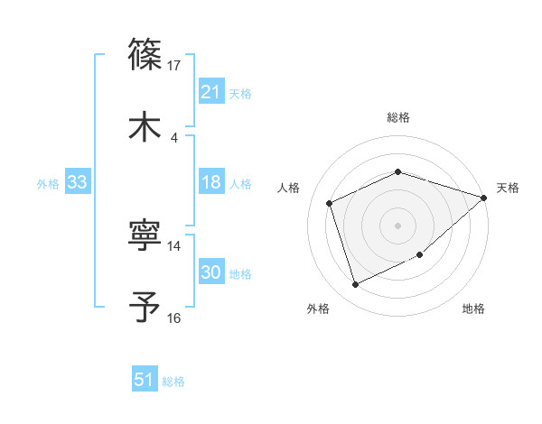 篠木 寧予さんの総格は51画の3点!