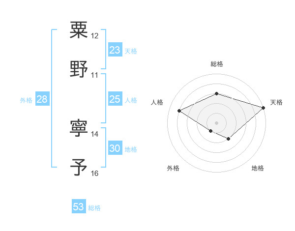 粟野 寧予さんを姓名の画数から五運を鑑定