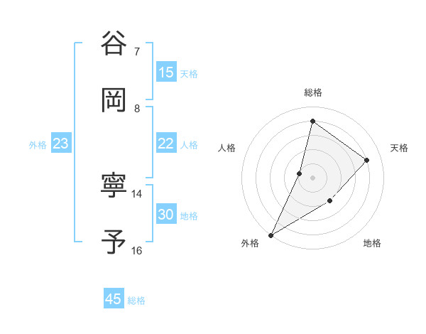 谷岡 寧予さんの総格は45画の4点!