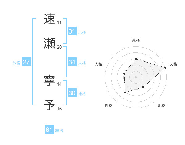 速瀬 寧予さんの天格は31画の5点!