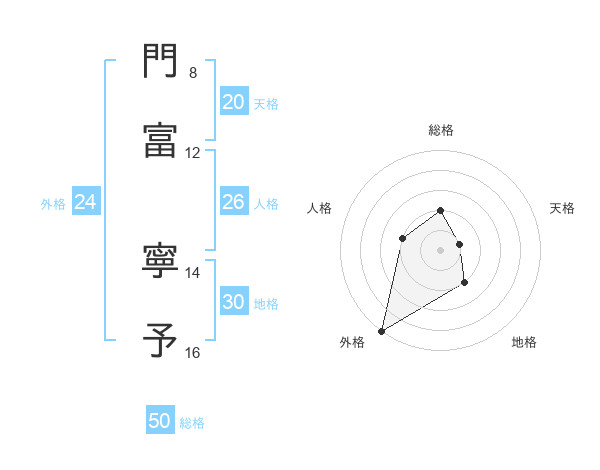 門富 寧予さんの総格は50画の2点!