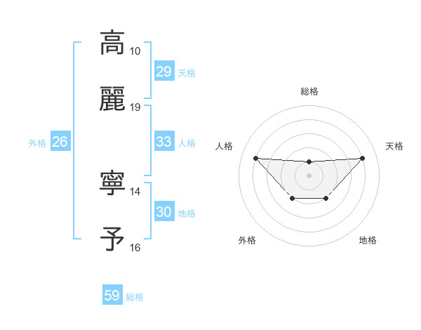 高麗 寧予さんを姓名の画数から五運を鑑定