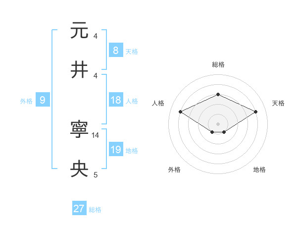 元井 寧央さんの総格は27画の3点!