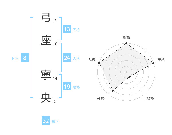 弓座 寧央さんを姓名の画数から五運を鑑定