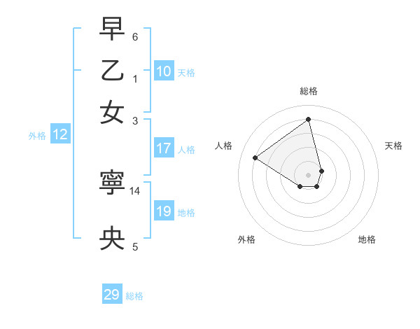 早乙女 寧央さんを姓名の画数から五運を鑑定