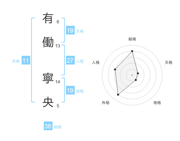 有働 寧央さんの総格は38画の4点!