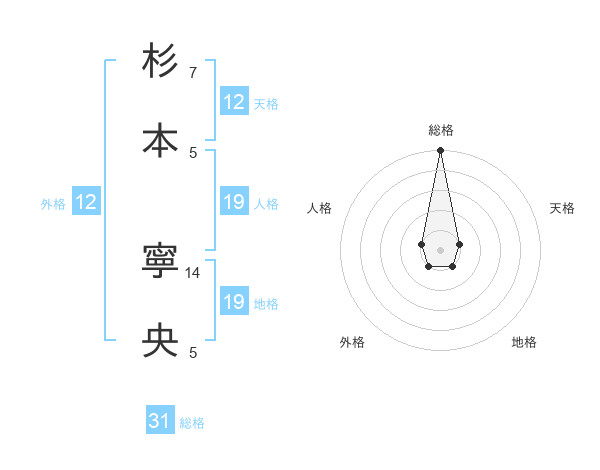 杉本 寧央さんの総格は31画の5点!