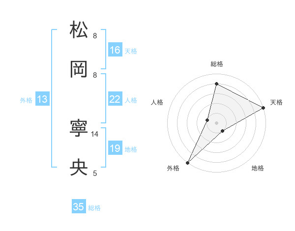 松岡 寧央さんを姓名の画数から五運を鑑定