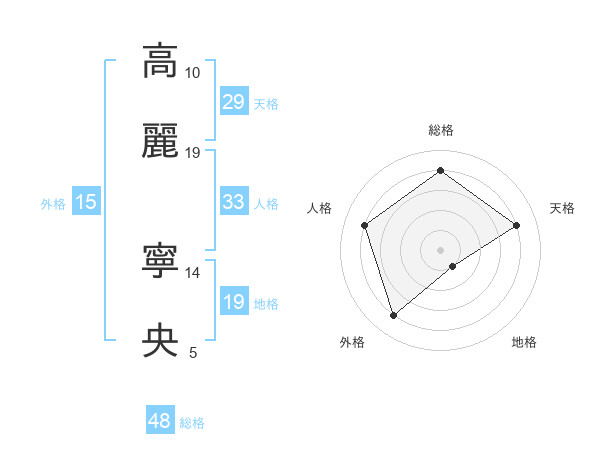 高麗 寧央さんの総格は48画の4点!