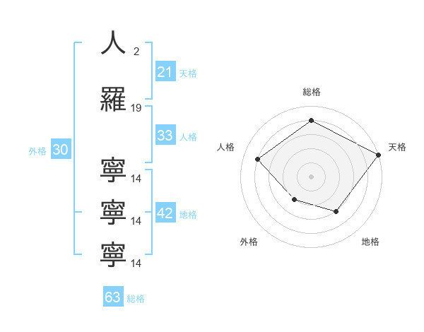 人羅 寧寧寧さんの天格は21画の5点!