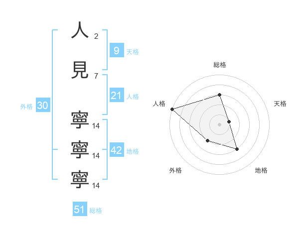 人見 寧寧寧さんの総格は51画の3点!