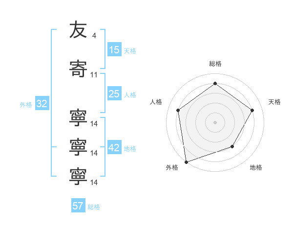 友寄 寧寧寧さんの総格は57画の4点!
