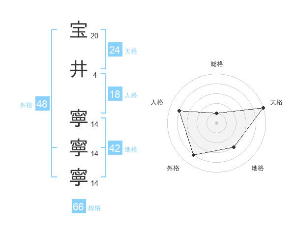 宝井 寧寧寧さんの天格は24画の5点!