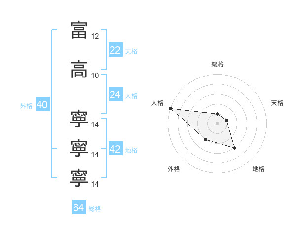 富高 寧寧寧さんの総格は64画の1点!