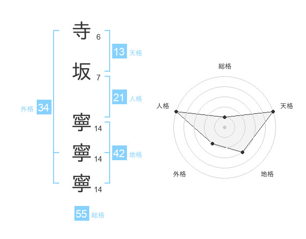 寺坂 寧寧寧さんの天格は13画の5点!
