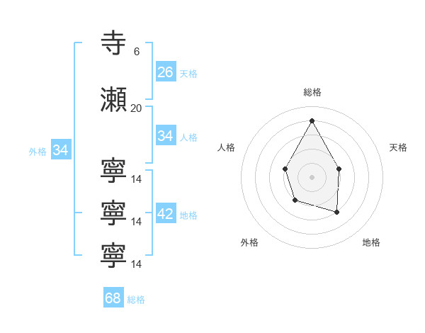 寺瀬 寧寧寧さんの総格は68画の4点!