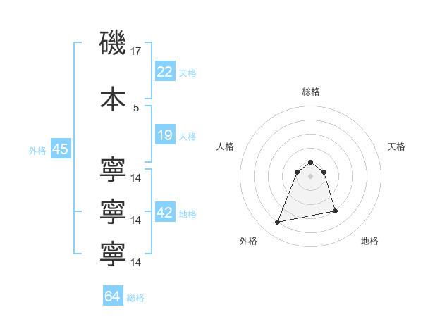 磯本 寧寧寧さんの外格は45画の4点!