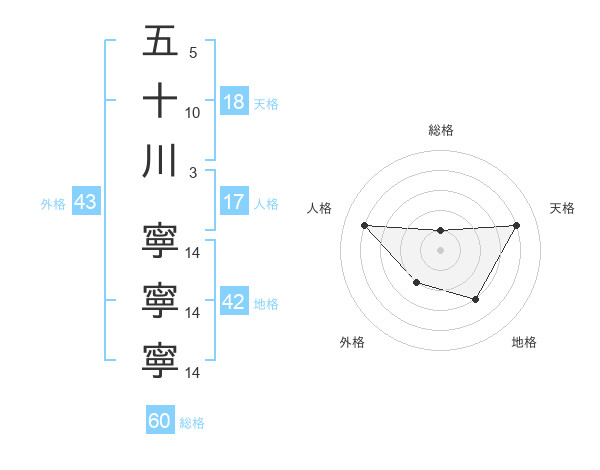 五十川 寧寧寧さんの総格は60画の1点!