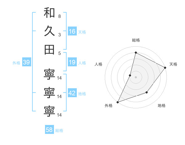 和久田 寧寧寧さんを姓名の画数から五運を鑑定