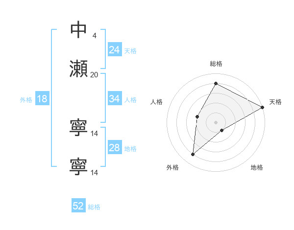 中瀬 寧寧さんの総格は52画の4点!