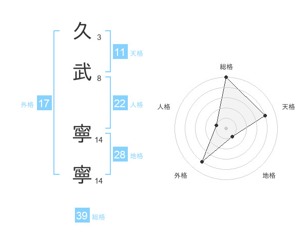 久武 寧寧さんの外格は17画の4点!