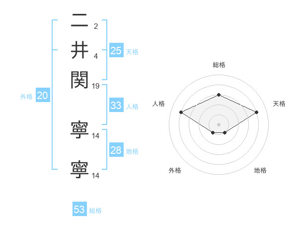 二井関 寧寧さんの天格は25画の4点!