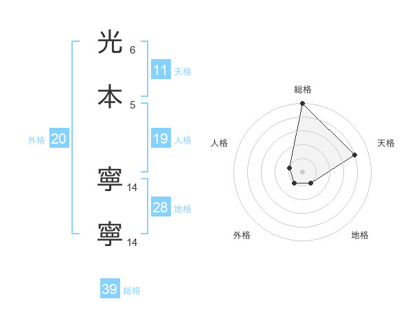 光本 寧寧さんの総格は39画の5点!